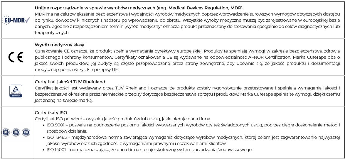 Produkty marki CureTape - certyfikaty potwierdzające jakość