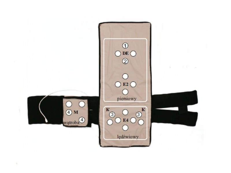 Materac OWZO posiada 20 przetworników. Po 4 przetworniki w pasie szyjnym, piersiowym i wątrobowym oraz 8 w pasie lędźwiowym.